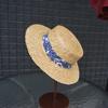 Retro Straw Wheat Ears Floral Stripes Men And Women Summer Shading Sun Protection Wide Brim Flat Top Top Hat Vacation Beach Straw Hat