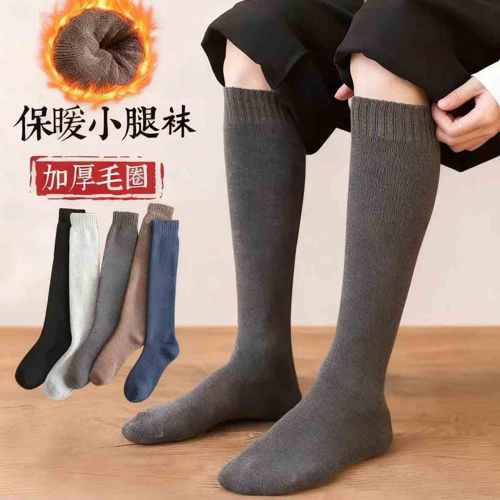 Long Socks Men'S Season Large Size High Tube Calf Socks Winter Piled Thickened Warm Men'S Terry Black Stockings