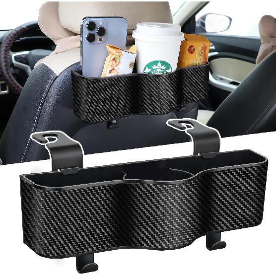 Backseat Car Organizer With Cup Holder - Multifunctional Back Seat Car Organizer With Two Seat Hooks, Fits Most Cars, Can Hold Snacks, Canned Drinks