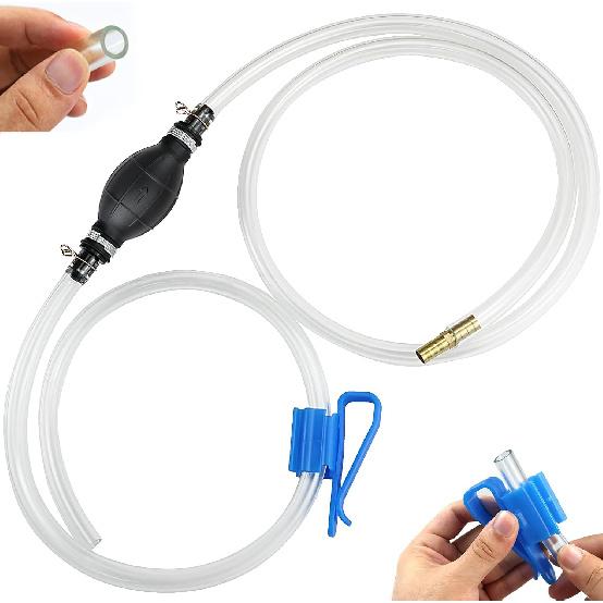 【Safety Notice】Not suitable for salt water or chemicals that corrode copper. Ensure the source liquid is higher than the receiving container, and fully submerge the hose end in the liquid to allow the siphoning process to function smoothly.