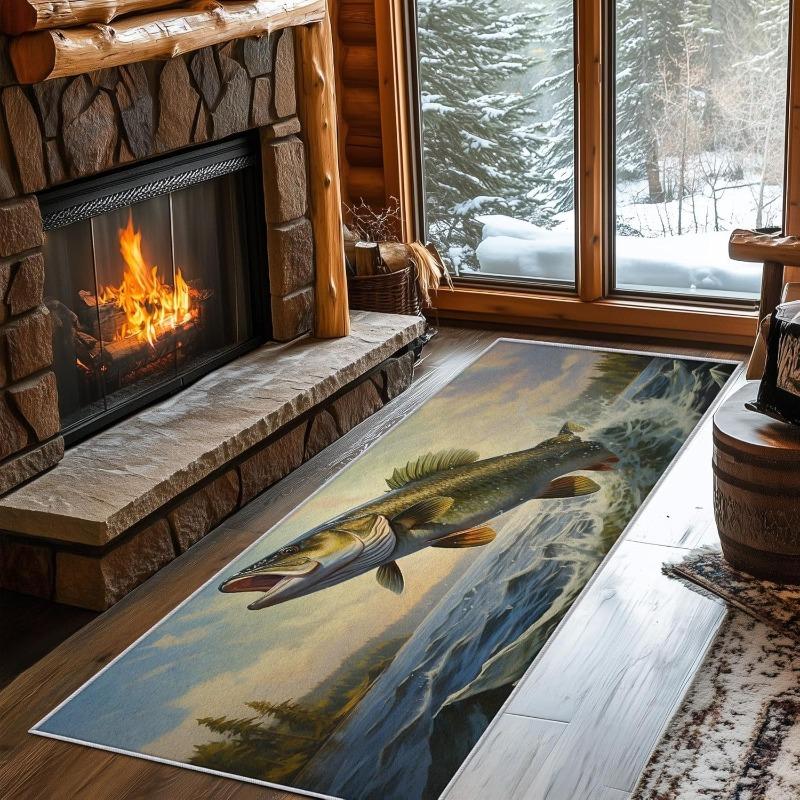 Fish Print Carpet Outdoor Theme Fish Pattern Floormat Absorbent Non-Slip Rug for Bedroom Living Room Kitchen Study Hallway