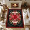Christmas Poinsettia Floral Area Rugs Non-Slip Washable Carpet for Bedroom Living Room Rug Holiday Decor Floor Mat