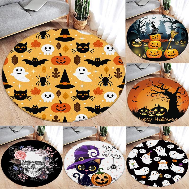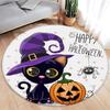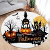 Halloween Themed Round Door Mat with Ghost Pumpkin Cat Skull Patterns Floor Mat for Home Decor Adding Festive Spooky Atmosphere