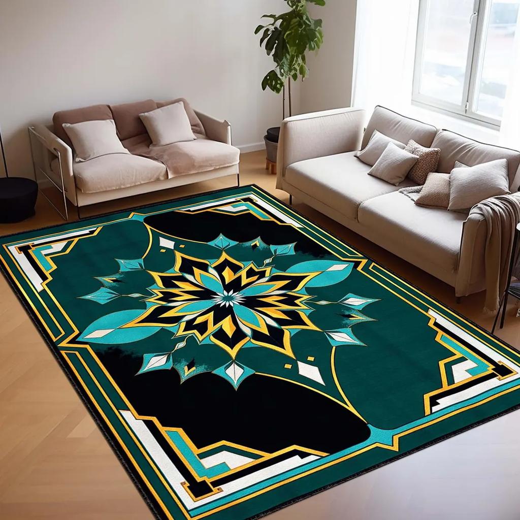 Blue Art Deco Area Rug Geometric Vintage Style Carpet Bold Glam Floor Mat for Modern, Elegant Rug Luxury Home Decor, Modern Rug