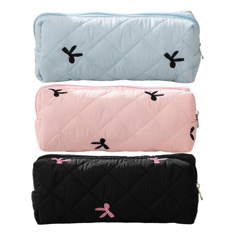 1pcs Large Capacity Bow Pencil Case School Supplies Pencil Pouch Stationery Box Zipper Closure Bag School Desktop Containers