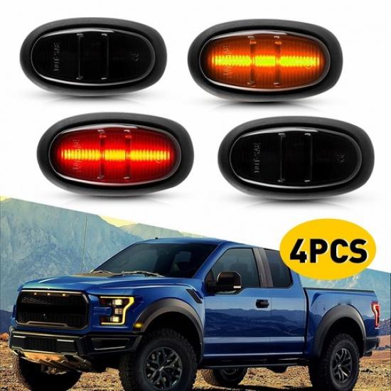 4X Amber + Red LED Side Marker Fender Lights For 2017- Ford F150 SVT Raptor
