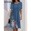 2025 Fashion Trend 3D Imitation Denim Pattern Women's Dress Summer Sreet Short Sleeve O-Neck Loose Casual Flowers Print Dresses