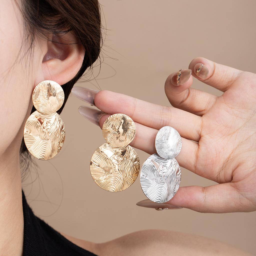 French High-End Round Metal Stud Earrings Personalized Retro Style Niche Earrings Design Light Luxury Design Earrings