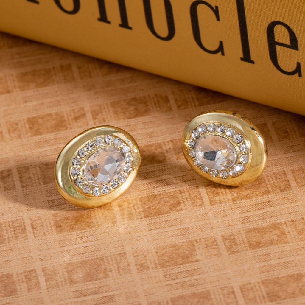French Retro Super Flash Oval Diamond-Set Earrings, Autumn And Winter High-End Fashion Temperament Earrings