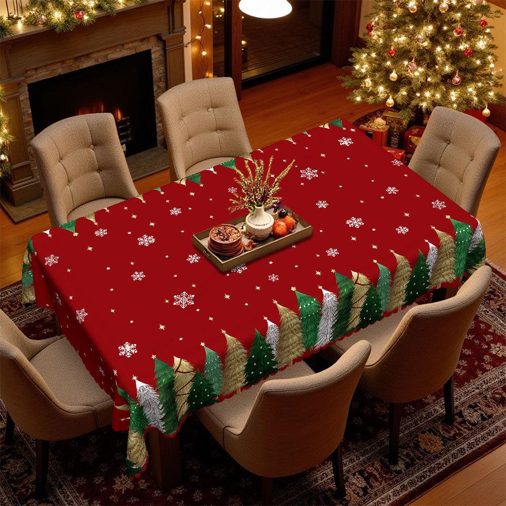 Red Christmas Grid Waterproof Dining Table Cloth, Rectangular/Round Snowflake Christmas Tree Pattern Light Luxury Dining Table Cloth