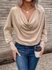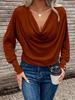 Experience timeless elegance with this Women's Elegant V-neck Long-sleeve Solid Color T-shirt, perfect for the cooler months of autumn and winter. Crafted from high-quality polyester material, this t-shirt offers both comfort and style. The distinct V-neck design adds a touch of sophistication, while the solid pattern and absence of decorations create a versatile and clean look, suitable for any occasion. The acetate fabric adds a subtle fur-like texture, enhancing the overall warmth and coziness. With its long sleeves, this t-shirt is an ideal addition to your seasonal wardrobe.