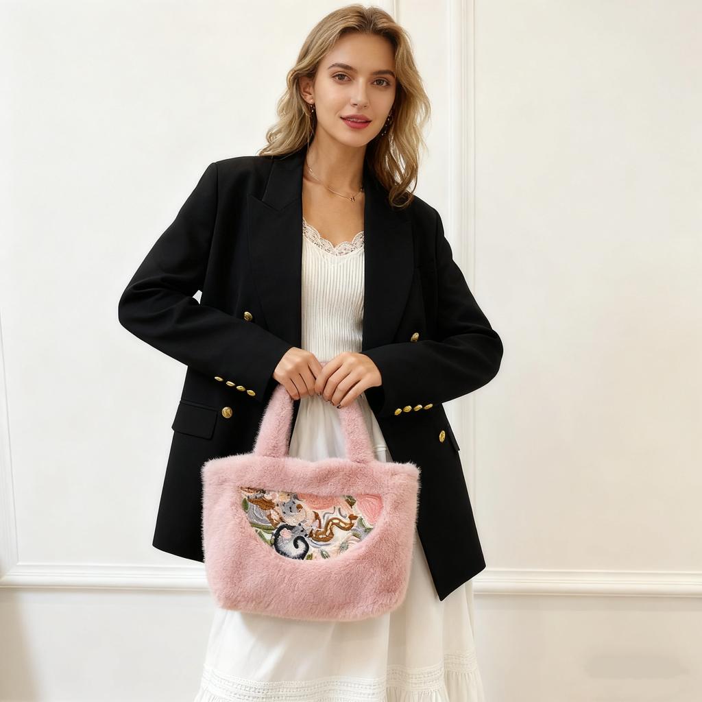 Tote Fluffy Bag Faux Fur Purses for Women Plush Handbag Cute Purse For Fall Winter Clutch Top Handle Bag Fuzzy Underarm Hobo Bag Casual Work Satchel