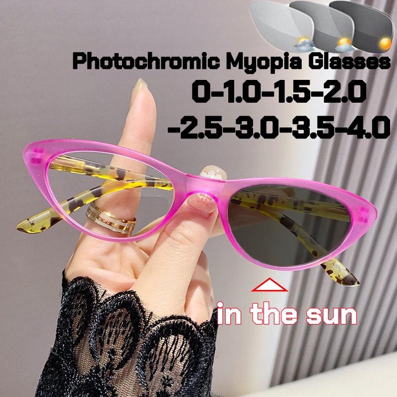 New Trend Cat Eye Photochromic Glasses for Women Anti Blue Light Fashionable HD UV Protection Near Sight Eyeglasses Diopter To -4.0
