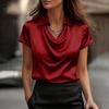 Women's Fashionable Solid Color Lapel Short Sleeved Temperament Pullover Shirt Top