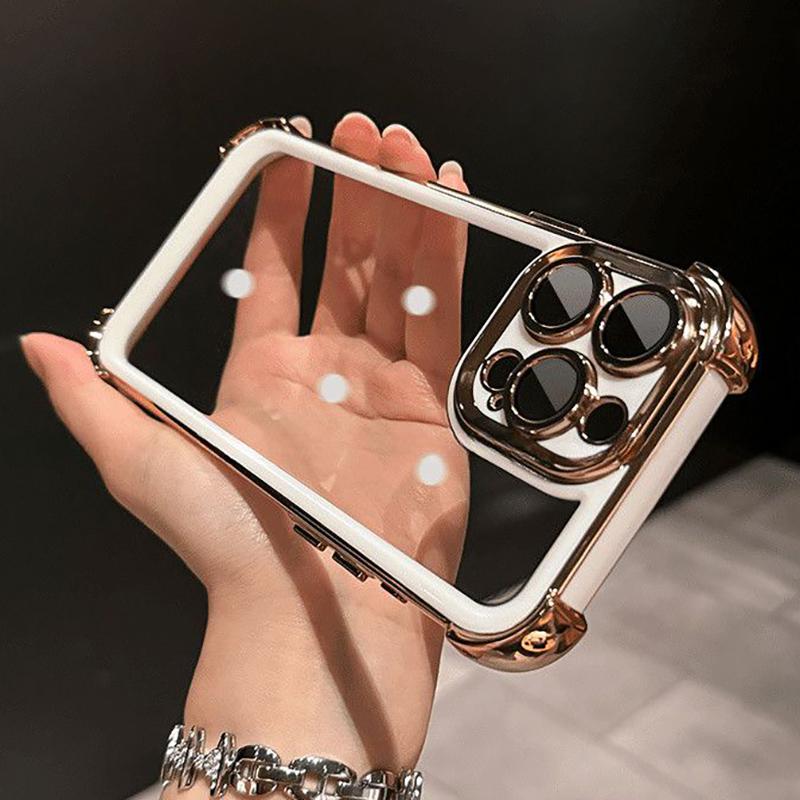 Luxury Plating Clear Shockproof Phone Case For iPhone 16 15 14 13 12 11 Pro Max Plus Soft Bumper Armor Hard Acrylic Back Cover