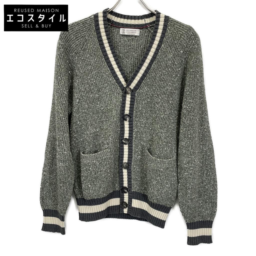 Brunello Cucinelli Green Cotton X Cashmere X Silk X Nylon Button Knit Cardigan Tops 44 Green grayUsed