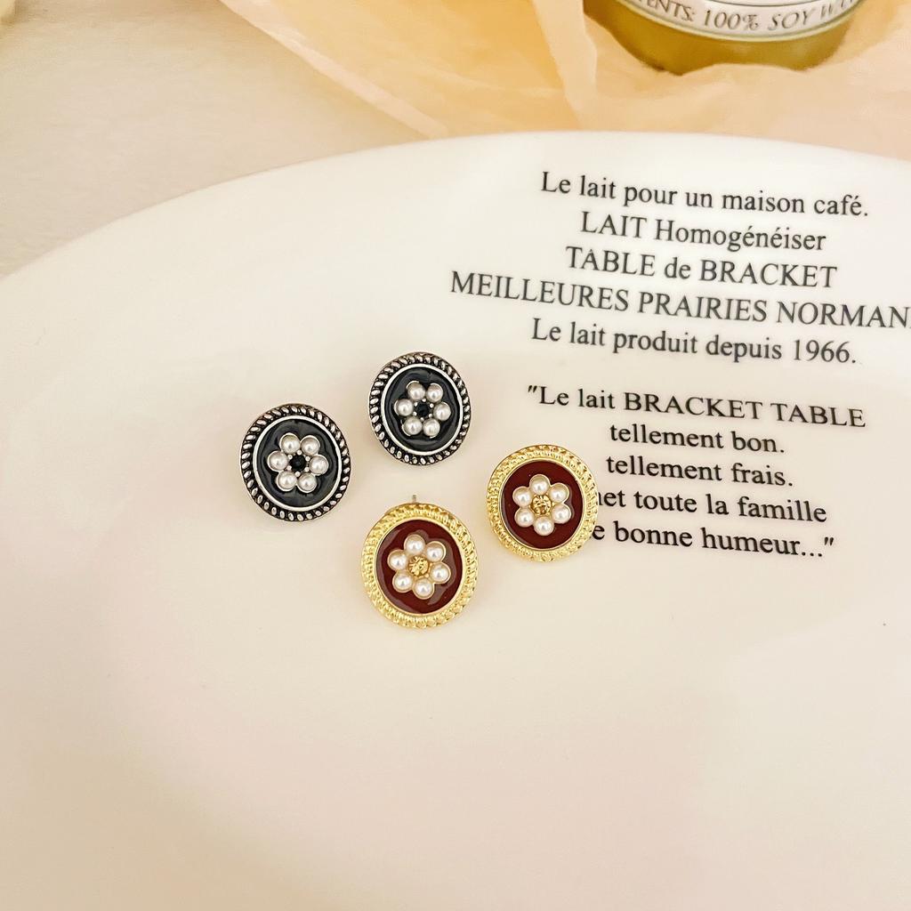 S925 Silver Needle Korean French Retro Stud Earrings Women's Round Pearl Flower Earrings Do Not Fade Trendy Ears