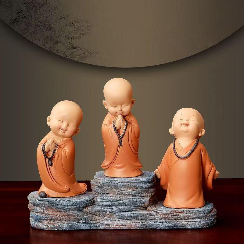 Resin Cute Little Monk Sculptures and Figurines Home, Room Car, Office, Table Decoration and Accessories Wealth Luck Decor