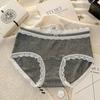 Ladies Spring and Autumn Vintage Lace Edge Color Yarn Cotton Wrap Hip Mid Waist Triangle Briefs
