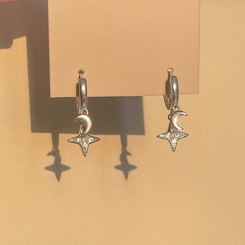 Niche Retro Graffiti Star & Moon Earrings Women's INS Light Luxury Autumn Winter Personalized Trendy Style Casual Daily Fashion Jewelry