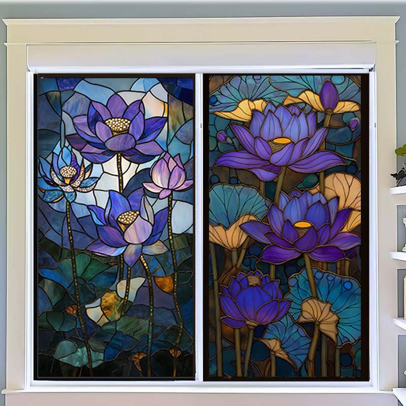 European Style Oil Painting Art Privacy Window Film Waterproof Sun-proof Church Stained Glass Film Lotus Pattern Window Stickers