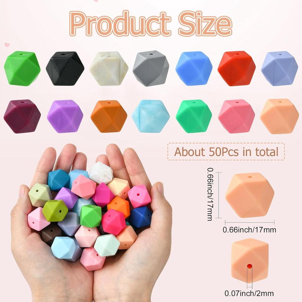 DanLingJewelry 50Pcs 17mm Hexagon Silicone Beads Bulk Colorful Rubber Large Polygonal Silicone Loose Beads for Keychain Lanyards Jewerlry Making