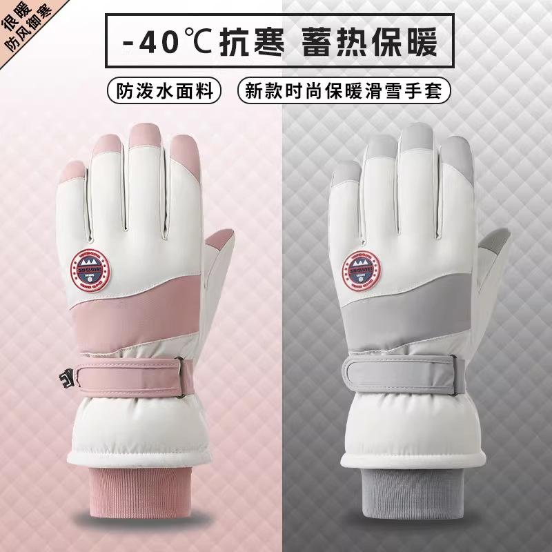 Ski Gloves Women's Outdoor Riding Electric Motorcycle Velvet Cotton Warm Waterproof and Cold-proof Men's Winter