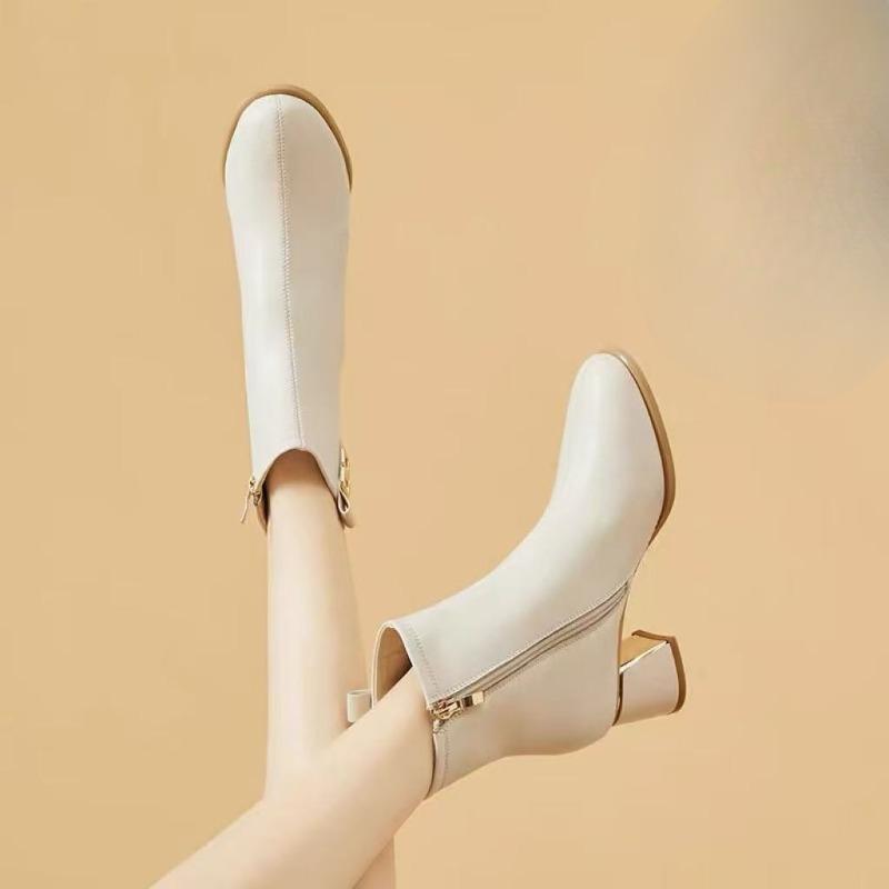 Short Boots - Women's Thick-soled Leather Boots with High Heels, New Style, Side Zipper Shoes