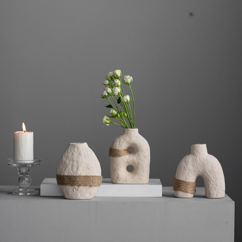 Earth Glaze Small Flower Insert Simple Binding Rope Ceramic Vase Creative Home Decoration Process Ornament