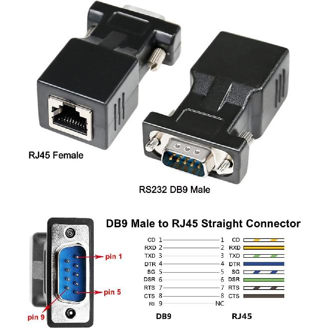 DTECH DB9 To RJ45 Serial Adapter RS232 Male To RJ-45 Female Ethernet Converter Compatible with Standard 9 Pin RS-232 Devices