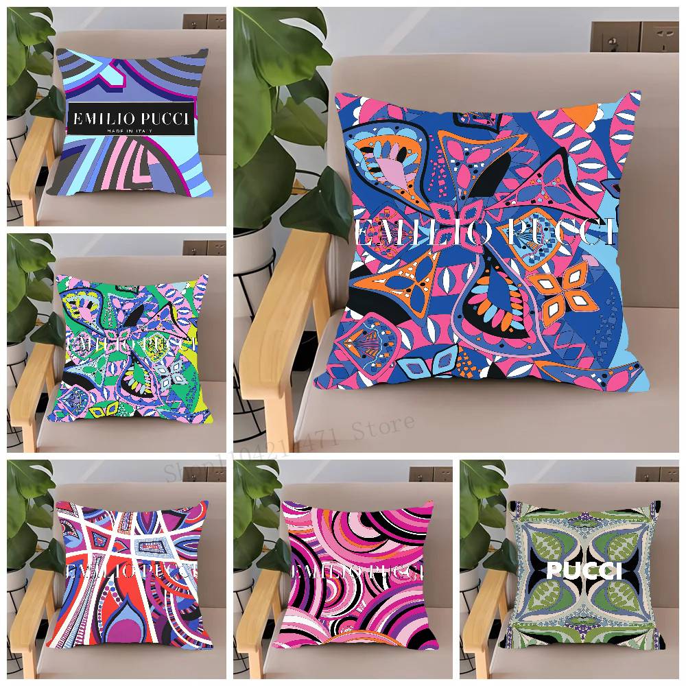 E-EE-Emilio Logo P-Pucci Pillow Case Home Decor Throw For Sofa Bed Car Room Decor Gift Idea