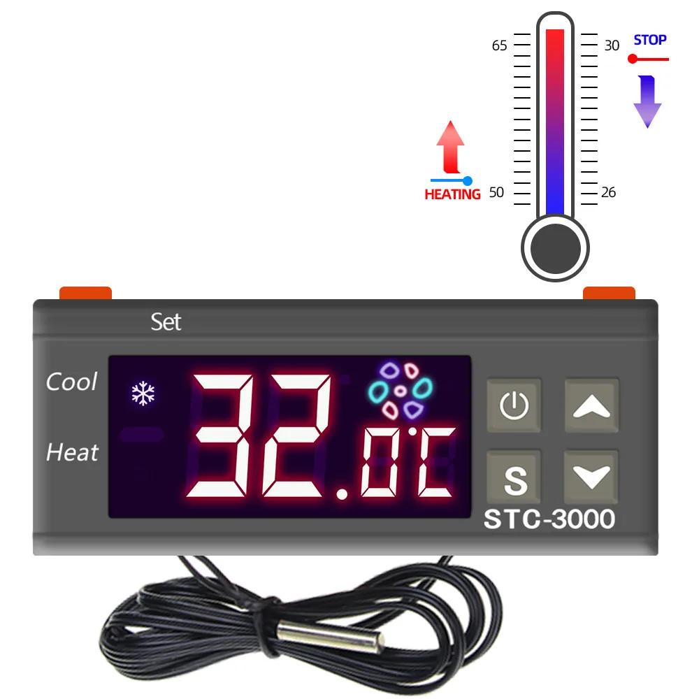 STC-3000 12V 24V 220V Temperature Controller Alert Sensing Refrigeration Heating Temperature Correction Hygrometer