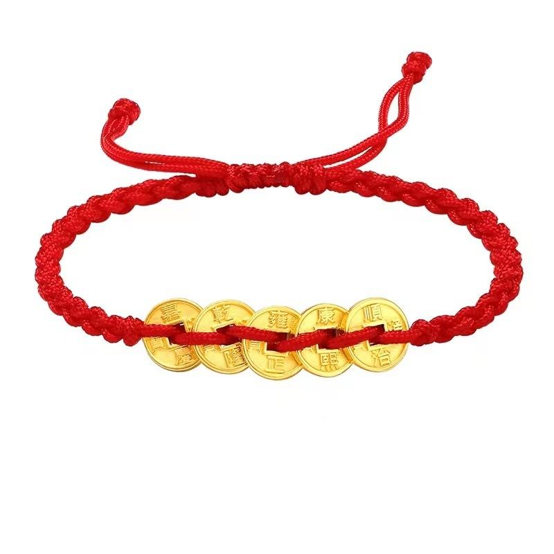 Handmade Lucky Five Emperors Bless Have Bring Wealth Money Coin Rope Year Crystal Bracelet Hand-woven Antique Bracelet Gift