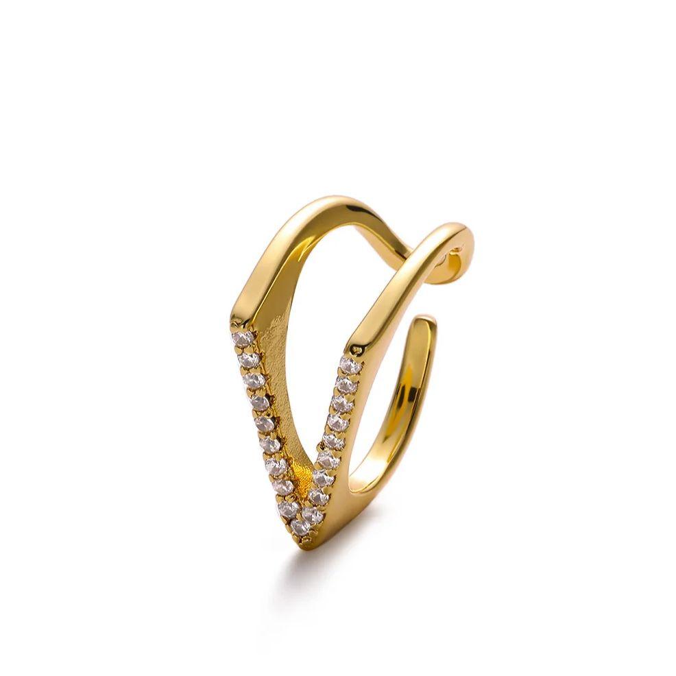 Luxury Zircon Geometric V Rings For Women Gold Color Stainless Steel V Shape Adjustable Ring Wedding Christmas Jewelry Gift