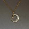 Cute Female Crystal White Zircon Stone Moon Star Pendant Necklace Vintage Gold Color Wedding Jewelry For Women