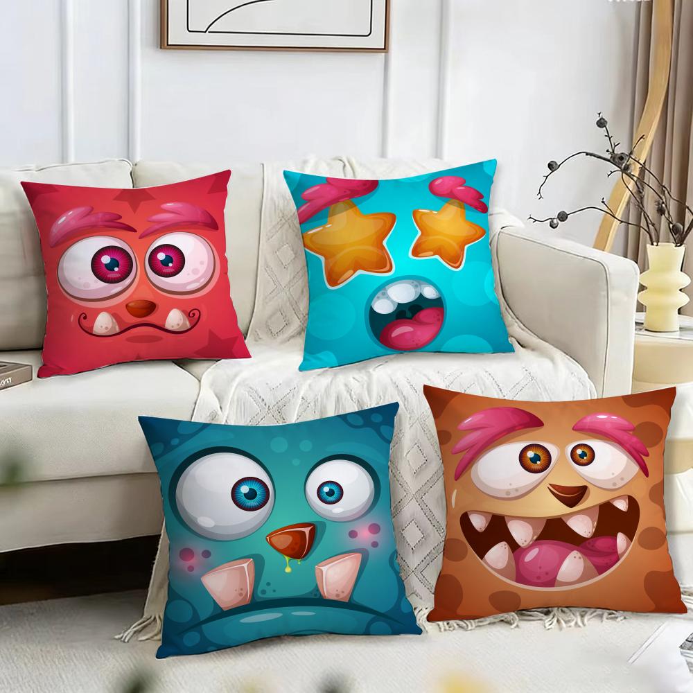 Funny Little Monster Emoticon Pack Cushion Cover Reversible Plush Pillow Cover – For Car, Sofa, Bedroom, Perfect As a Gift.