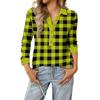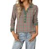 Women's Retro Street Lazy V,neck Long Sleeve Button Plaid Print Pullover Top