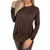 Women's Patchwork Long,Sleeved Elegant Round Neck Irregular Hem Top