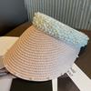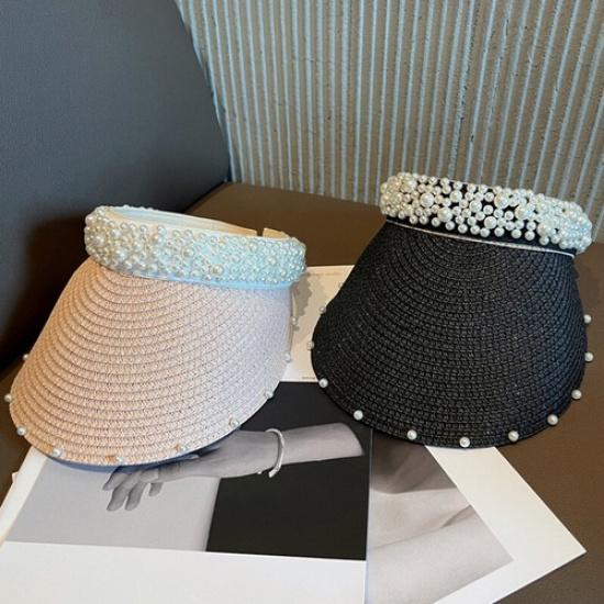 Women Beach Sun Hat Straw Visor Cap Beaded Pearl Casual Vacation Summer Sun Hat