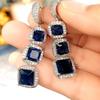 New Luxury Square White Green Zircon Long Tassel Drop Earring for Women Fashion Sterling Silver Wedding Engagement