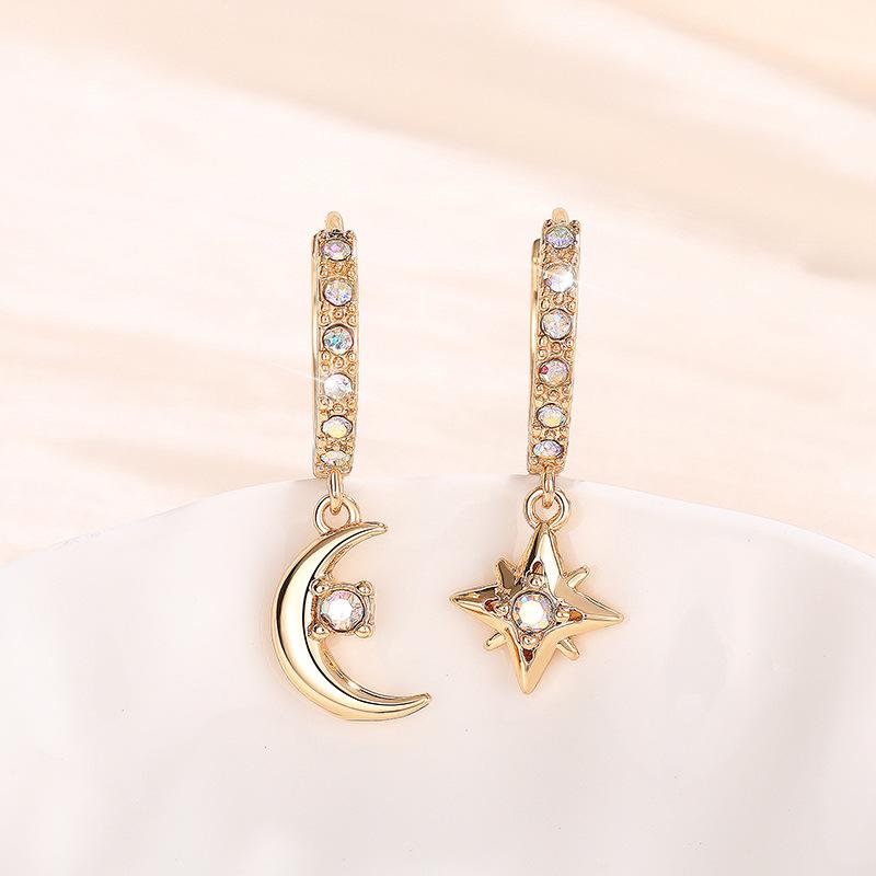 Exquisite Female Earrings Sterling Silver Asymmetric Star Moon Tassel Earrings for Women Zircon Earrings Girl Party