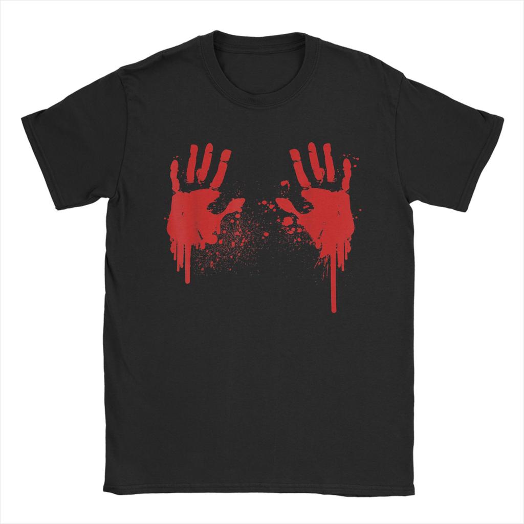 Bloody Hands Handprints Blood Splatter T-Shirts Men Round Collar 100% Cotton T Shirts Funny Halloween Tee Shirt 4XL 5XL Tops