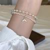 Korean Zircon Pearl Fishtail Double-layer Bracelet Personality Creative Design Sense Bracelet Fashion Temperament Versatile Jewelry Women