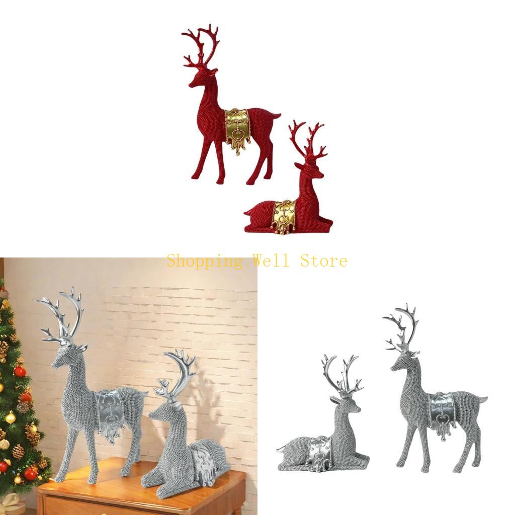 KX4B 2Pcs Resins Standing Sitting Reindeer Figurine Festival Decors for Home Office