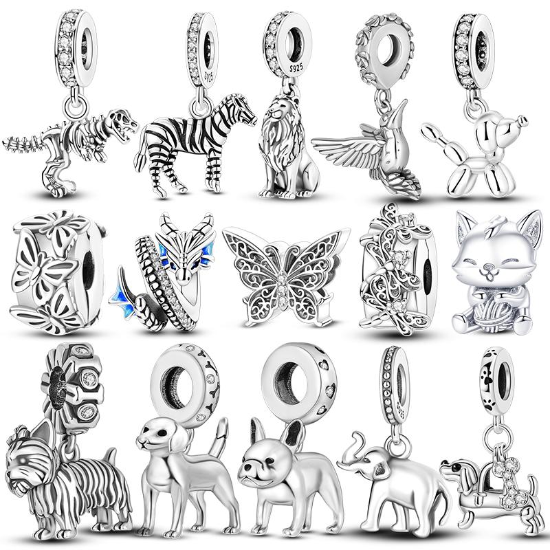 925 Silver Charms Beads Pendant Original Dog Cat Firefly Butterfly Dragonfly For Women Jewelry Making Fashion Accessories