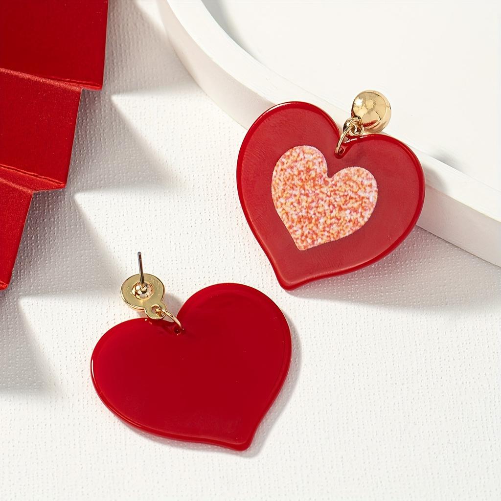 1 Pair of Red Pink Color Scheme Stud Earrings Peach Heart Love Classic Trendy Personality Vacation Ear Jewelry