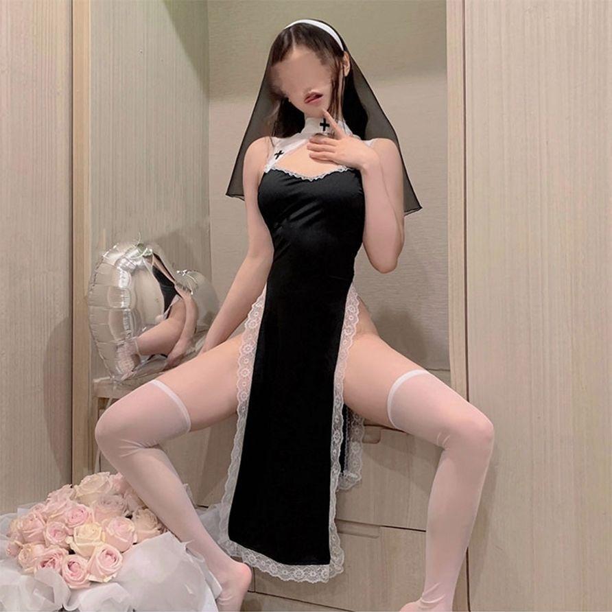 Sexy Lingerie Nun Uniform Hollow Uniform Seduction Cosplay Hot Free Small Chest Show Big Sm