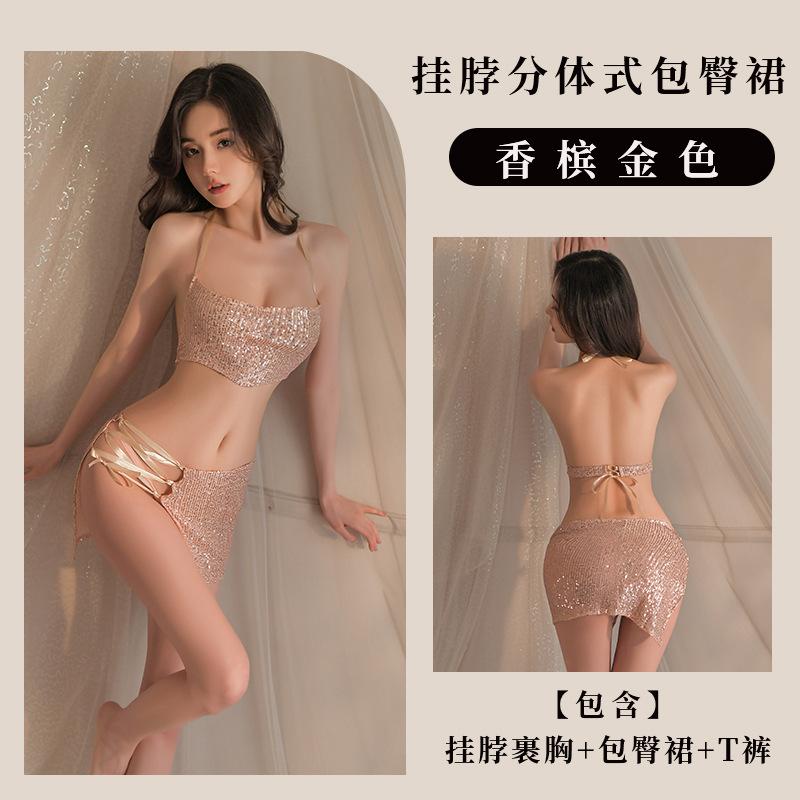 Sexy Underwear Shiny Beads Women's Nightclub Split Seduction Uniform Passion Free Short 656