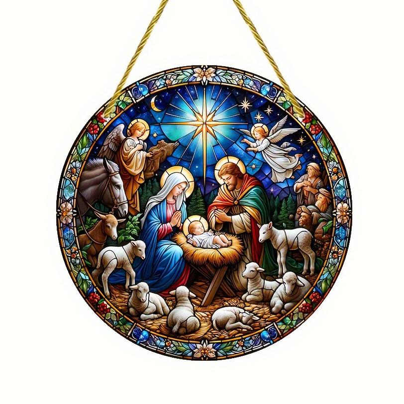 Round Acrylic Stained Sun Catcher - Vibrant Jesus Birth Design, Ideal for Porch & Garden Decor, Spiritual Home Decor, Four Seasons Decoration