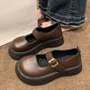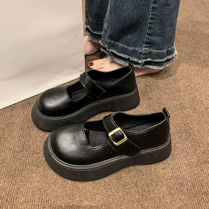 New Style Leather Shoes - Retro Style, Large Round Toe, Thick Sole, Heightening Effect